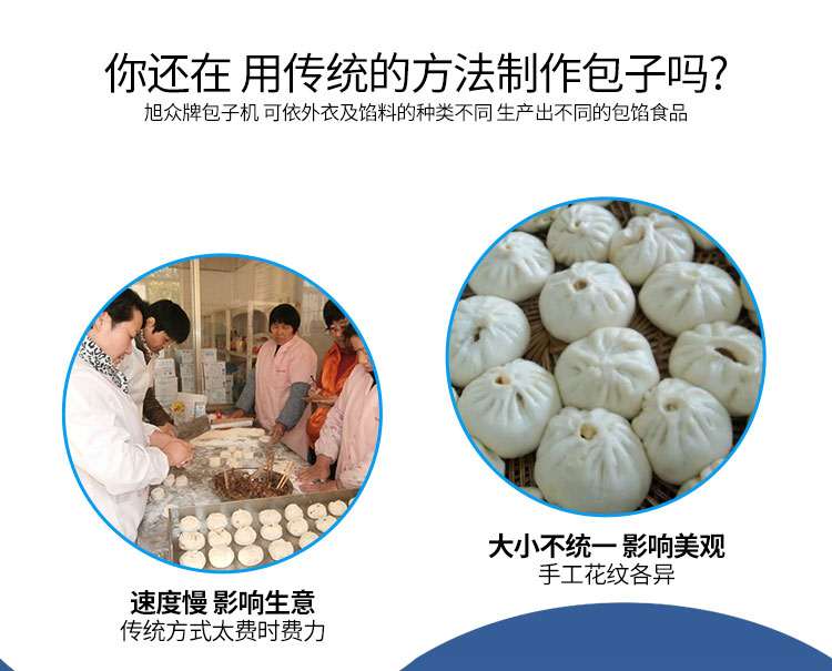 XZ-87型全自動包子機,可生產(chǎn)各種肉包、菜包、肉菜包、小籠包、湯包、水晶包、圓饅頭、奶黃包、豆沙包、叉燒包、南瓜餅、煎堆等十幾種包餡制品。適用于賓館、飯店、學(xué)校、機關(guān)企業(yè)食堂、饅頭或包子加工廠、早餐工程店及速凍食品廠等單位??蓾M足不同客戶群體。免費提供工藝技術(shù)。免費上門培訓(xùn)指導(dǎo)安裝。