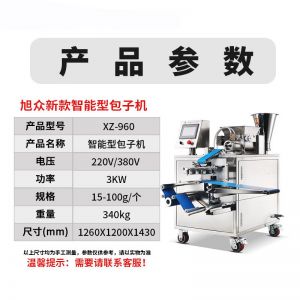 XZ-960多功能包子機(jī)采用新設(shè)計出面系統(tǒng),帶有輔助撥面裝置投面后無需重復(fù)使用手壓面/推面,有效提高工作效率/預(yù)防安全隱患;絞龍采用新概念,減少擠壓次數(shù),有效保護(hù)面筋、面團(tuán)不發(fā)熱,保證面皮的口感;做湯包時,皮可更薄,面皮里外更光滑(可當(dāng)氣球吹大)有效保護(hù)餡料里面的湯汁不會漏出或被吸收;出面斗帶有自動恒溫制冷系統(tǒng)最低溫度可達(dá)2℃ ,冷媒:R134A(特殊要求可按要求定制)(若定制,貨期增加20天工作日);操作簡單易懂,拆裝簡單,清洗方便;適合產(chǎn)品范圍:湯包,小龍包,速凍包,生煎包,發(fā)面包子,各類餡料包子等產(chǎn)品