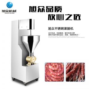 旭眾牌SZ-200灌腸機使用敞開式不銹鋼料斗,適用于連續(xù)添加物料;與灌裝手接觸部件全部采用優(yōu)質(zhì)不銹鋼制作以防生銹;該機自動化程度高,技術(shù)先進、性能穩(wěn)定、操作簡便、工作效率高,具有不破壞物料成份,保質(zhì)、保鮮等特點。