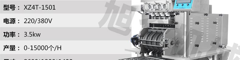 旭眾牌XZ4T-1501型多功能湯圓成型排盤機是一款只要將面團放入進料口,開機便可自動搓圓、成型的設備,制品不易變形,工作效率高,相當于15-20個工人同時手工制作湯圓,并可自動排盤,真正的低投入、高收效、省錢省工。