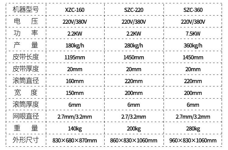 型號(hào) | XZC-160 | XZC-220 | XZC-360 |